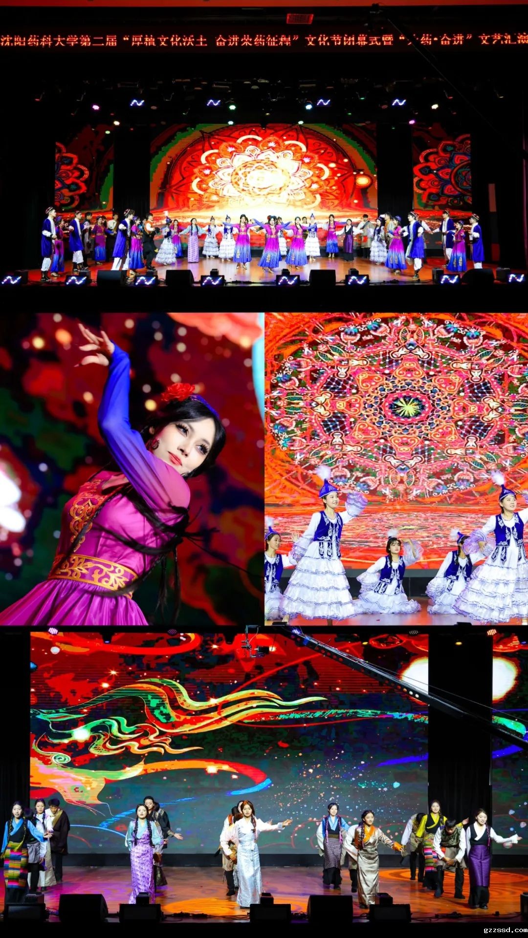 朗诵《马背上的药箱》把观众带回了战火硝烟的瑞金和长征路上,小合唱《又唱浏阳河》鼓舞着大家沿着前辈足迹坚定理想、开拓进取,街舞、啦啦操表演《朝阳》以动感奔放的舞步彰显了学校建校初期旺盛的生命力,歌曲《年少的你啊》以激情洋溢的歌声再现了代代betway竞彩足球人的朝气蓬勃、意气风发,三句半《母校聚你我 共话新风貌》表达了校友们对母校的深情热爱和美好祝愿,歌曲《东北民谣》以质朴的旋律诉说着东北人的豪迈与柔情,情景舞台剧《逐光追梦》演绎了辅导员用爱守护、躬耕实践的育人故事,舞蹈《红石榴》展现出北国药苑各族人民大团结的欢乐祥和,歌曲串烧《芳华》以风格各异的曲风呈现了学校发展建设的成就与辉煌,双职工歌曲串烧《有爱有家》描绘了夫妻伉俪用爱经营“小家”、用责任守护“大家”的温暖和谐画面,原创说唱歌曲《药飞冲天》抒发了“白大褂”们勇闯科研创新“无人区”的豪情与壮志,歌伴舞《盛世花开》唱响了学校高质量发展的信心与决心。文艺汇演在全场高唱生日歌、共同分享生日蛋糕的温暖和欢乐的气氛中圆满落下帷幕。